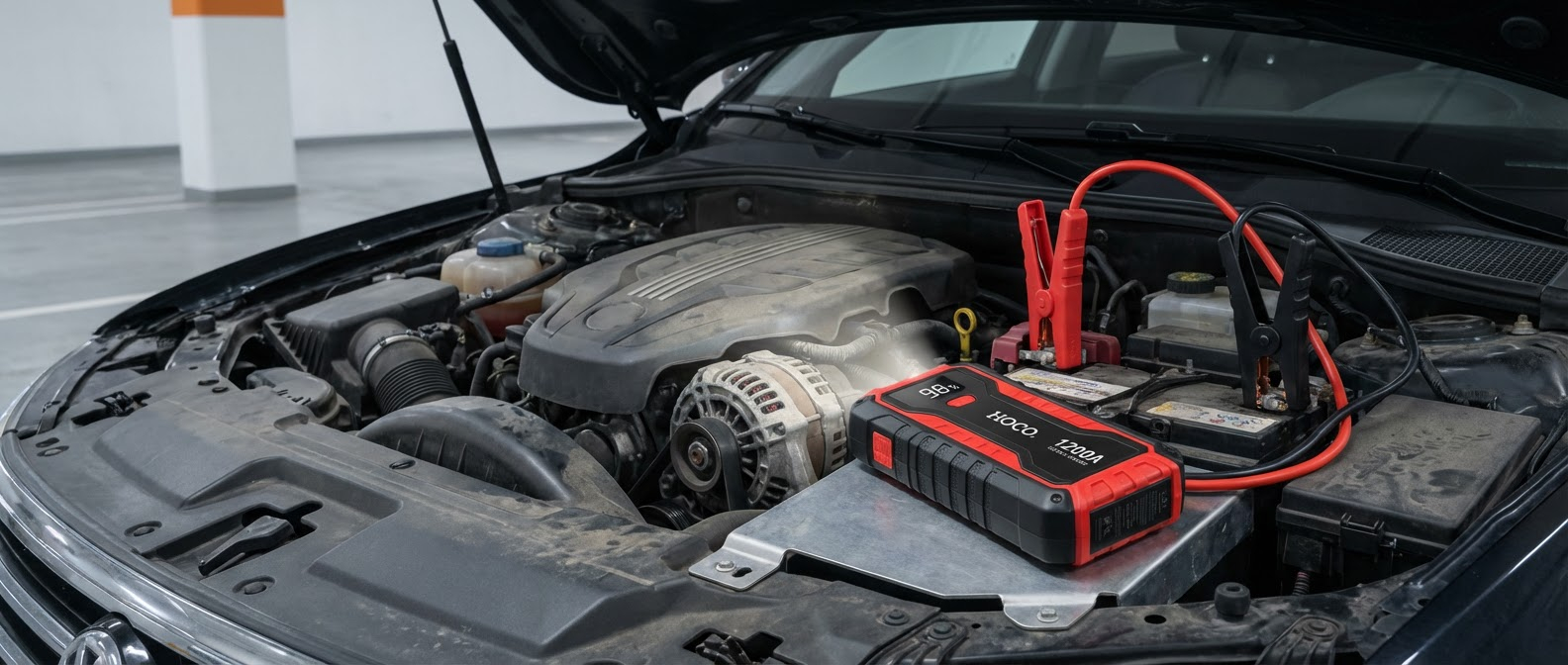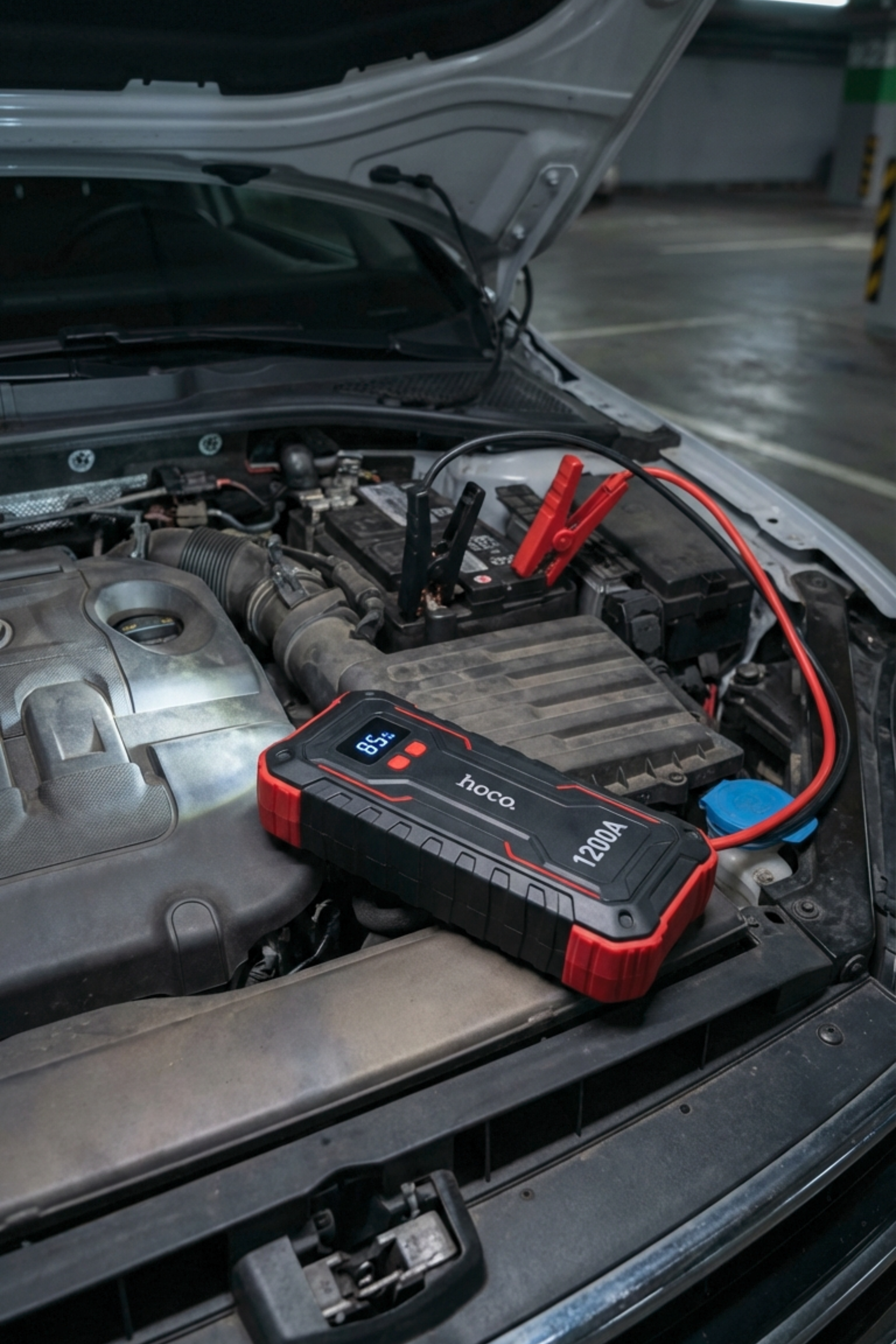 1200A akü takviye, LED acil durum feneri ve 10.000 mAh taşınabilir güç.