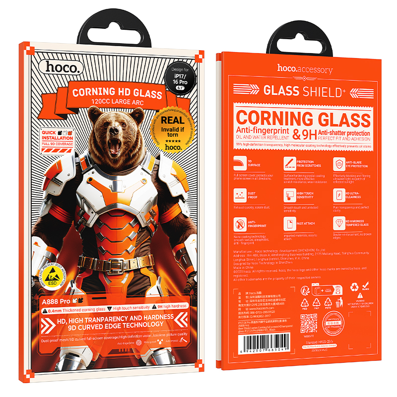 Hoco. Apple iPhone 17 Pro Bear Shield Corning Cam Ekran Koruyucu - Siyah