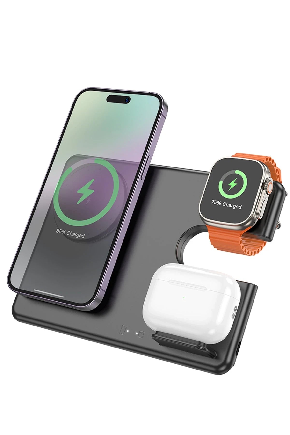 Hoco. CQ1 3in1 15W Manyetik Masaüstü Kablosuz Şarj Standı - Siyah