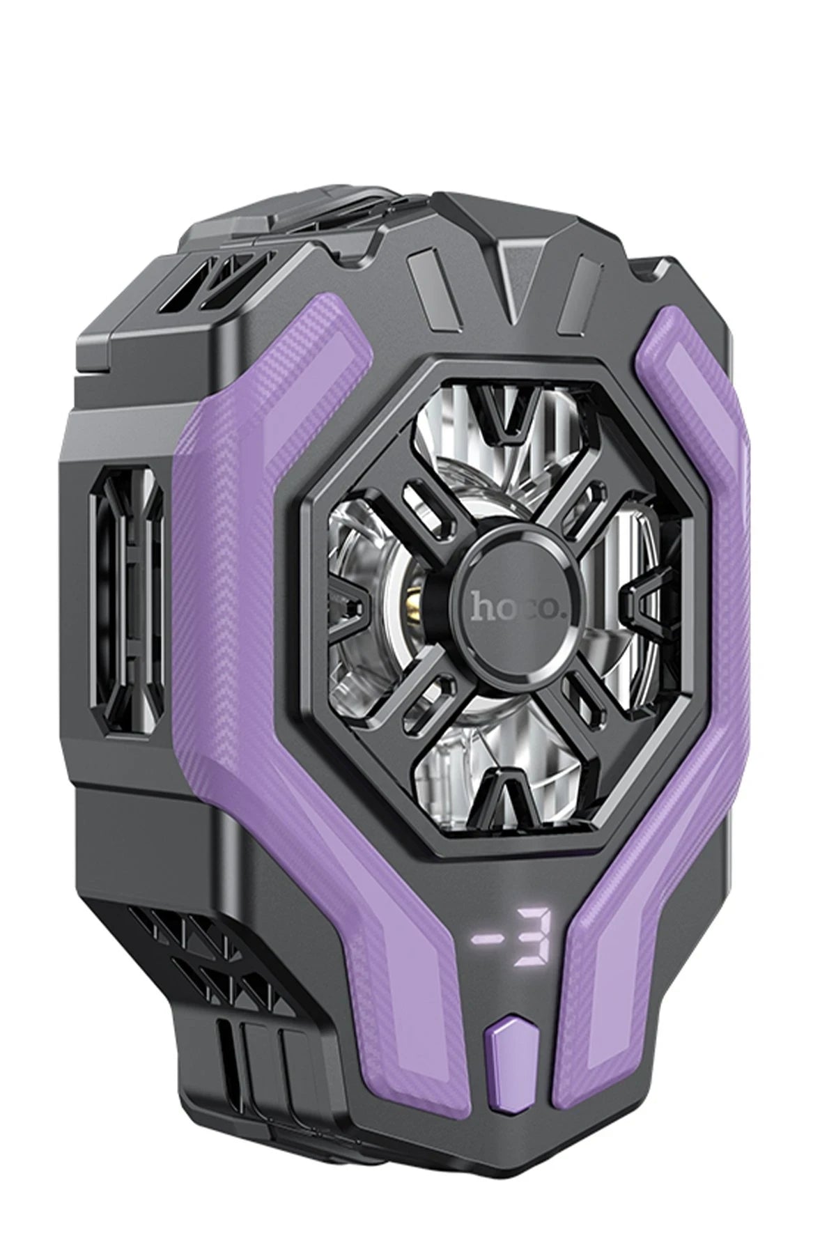 Hoco. GM26 Dijital Sıcaklık Göstergeli Radyatör Telefon Soğutucu Fan - Siyah-Mor