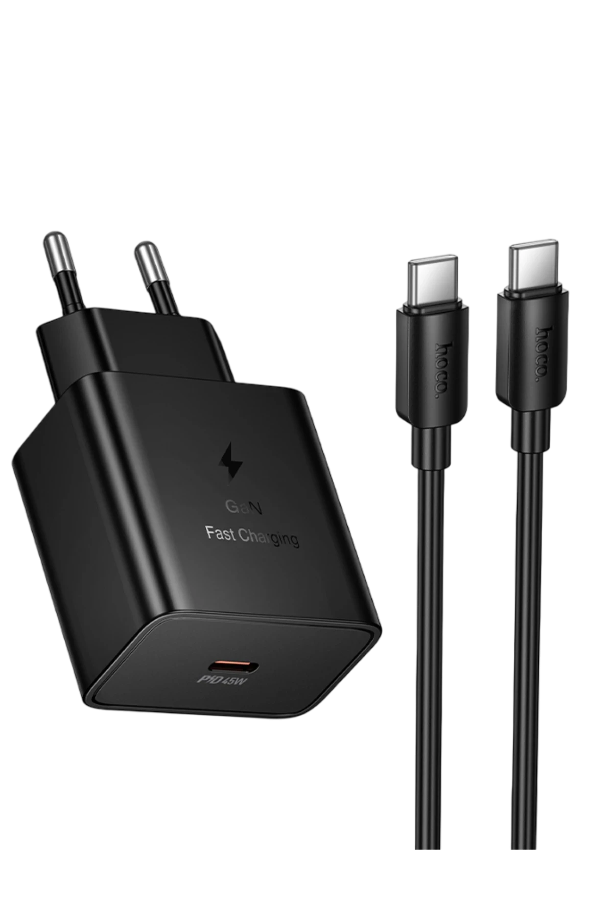 Hoco. N77 Star 45W Type-C Çıkışlı Ekstra Type-C to Type-C Kablolu PD Hızlı Şarj Aleti - Siyah
